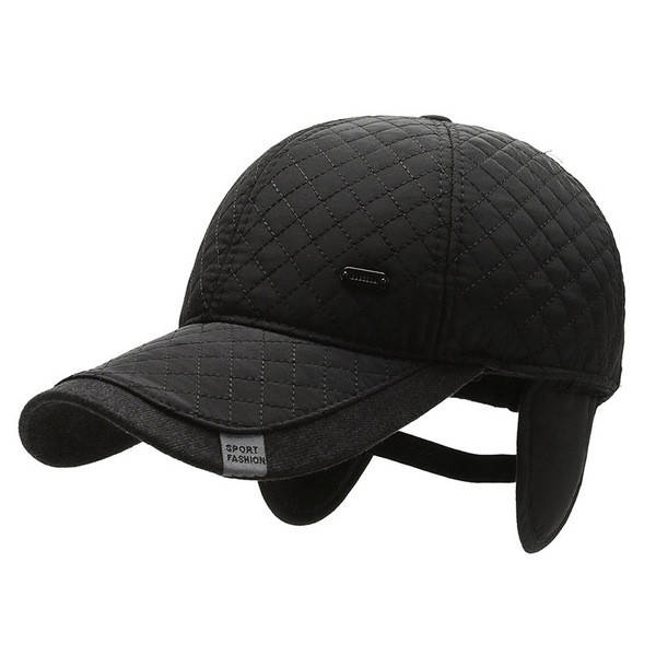 Бейсболка кепка с ушами осенне зимняя, Черный