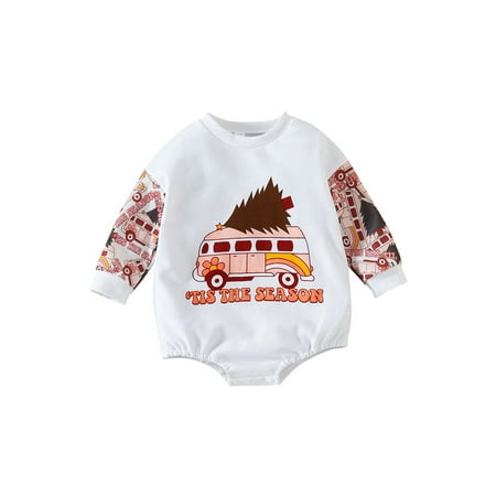 Glonme Buttons Romper Infant Xmas Christmas Jumpsuit Pullover Crew Neck Playsuit Santa Tree 80cm