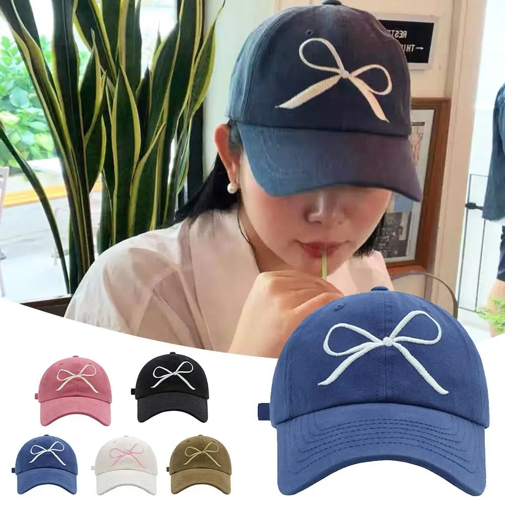 Бейсболки унисекс с вышивкой и бантом, весна-лето 2024, модные солнцезащитные женские дорожные летние шляпы, повседневные P6z4