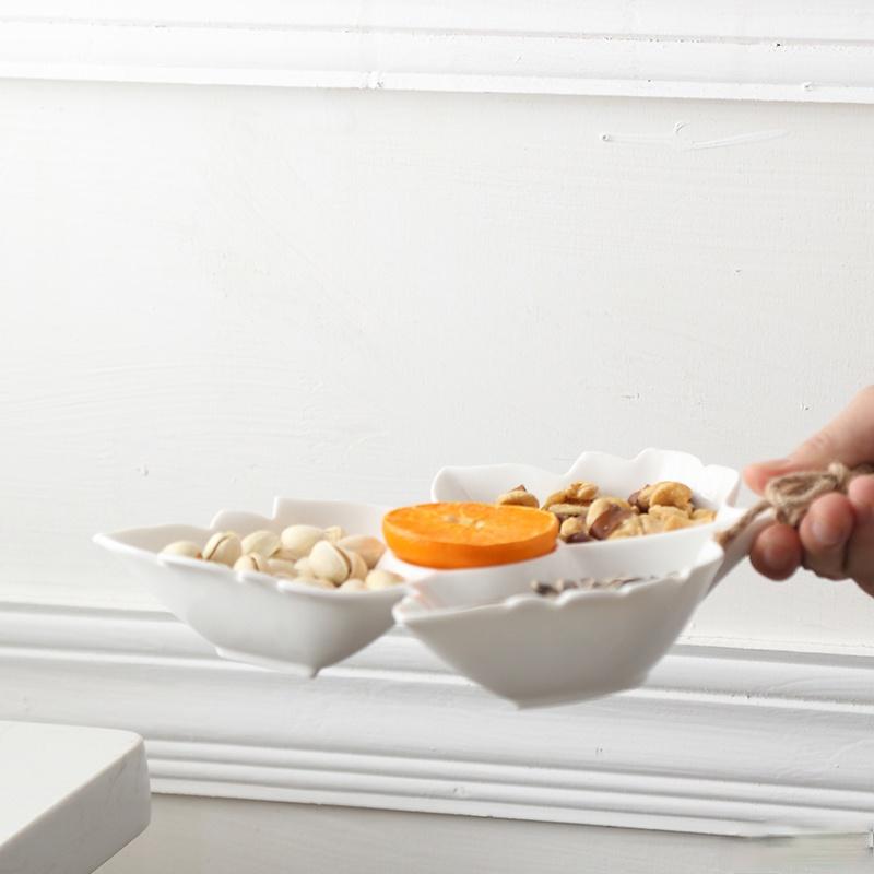 Белая керамическая тарелка Тарелка в виде кленового листа с деревянным поддоном Закуски Тарелки для сухофруктов Тарелка для закусок Главная Ваза для фруктов Тарелки для конфет