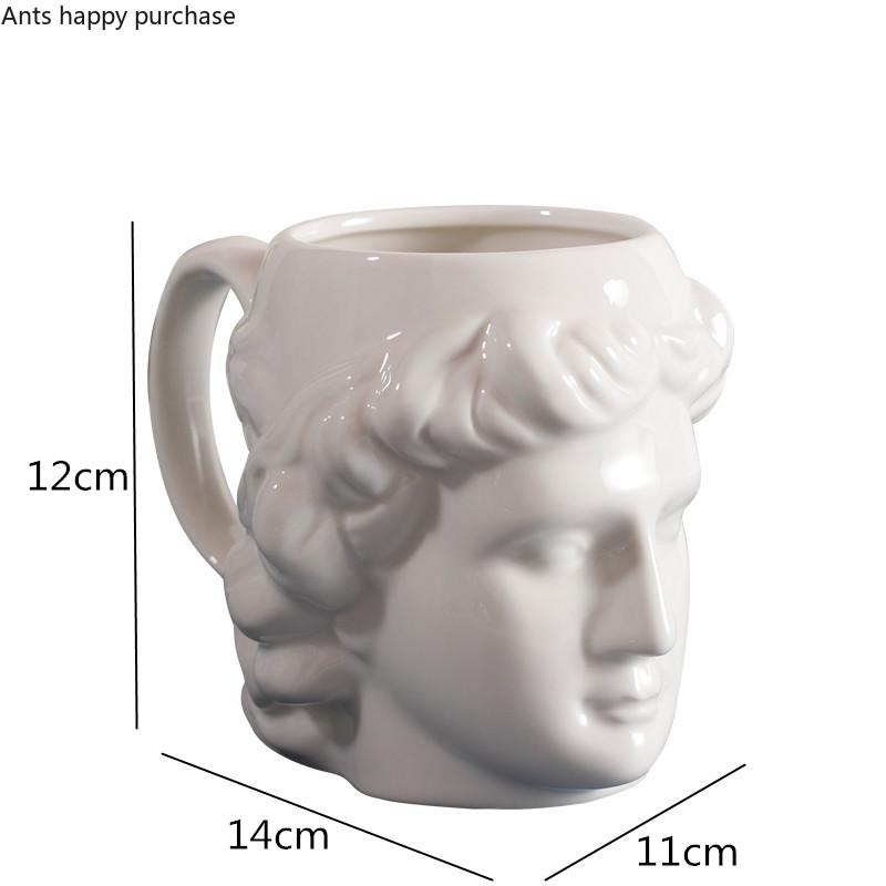 Белая керамическая чашка Статуя Аполлона Скульптура Кофейная чашка с ручкой Кофейная кружка Посуда для напитков Водные чашки Украшения Декор Резервуар для хранения