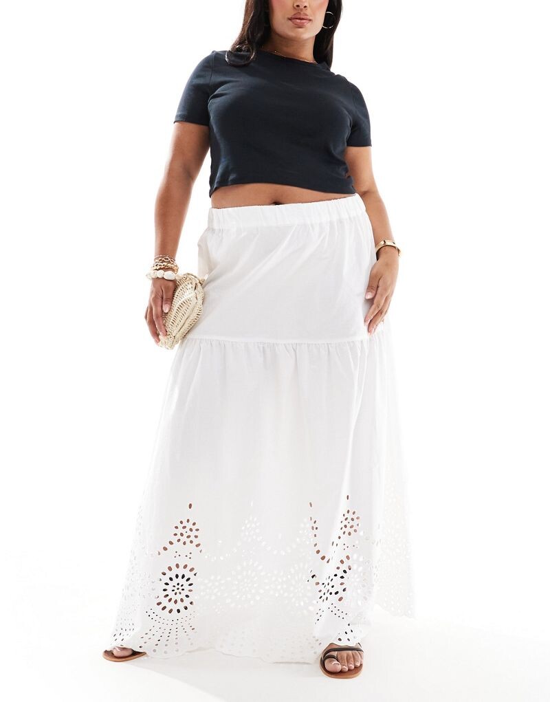 Белая многоярусная макси-юбка ONLY Curve с английской вышивкой