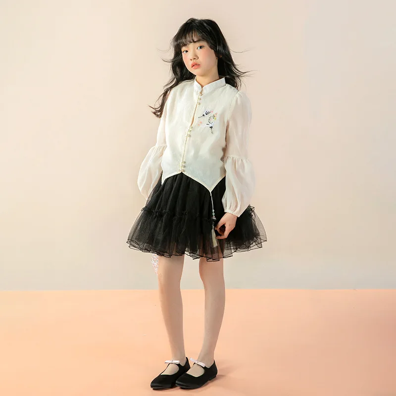 Белая рубашка с вышивкой в китайском стиле для девочек, элегантная милая детская блузка 8, 10, 12 лет