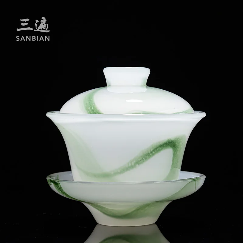 Белая фарфоровая чашка из нефрита, керамическая чашка большого размера, чашка для заваривания чая Gaiwan Kombucha, домашняя одинарная чаша