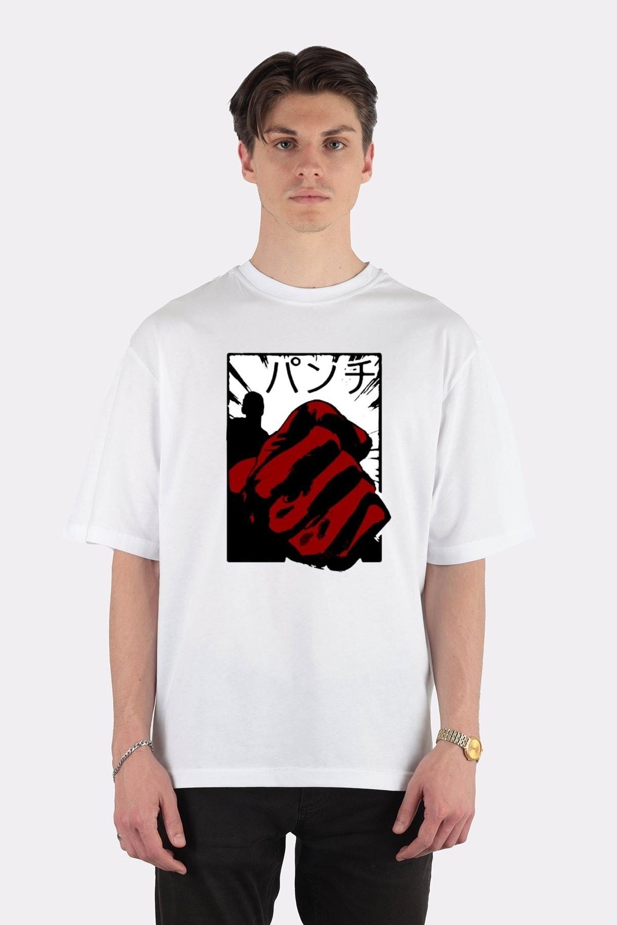 Белая футболка oversize унисекс One Punch Man - Сайтама