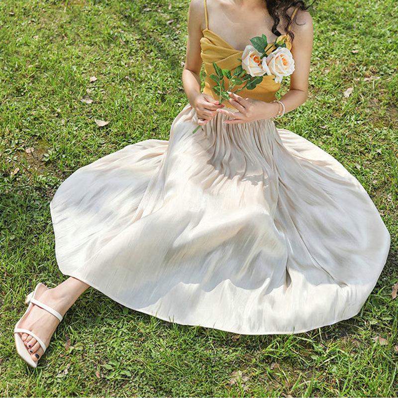 Белая шифоновая юбка, юбка женская летняя плиссированная средняя и длинная юбка-зонтик, большая пышная длинная юбка, женская драпировка, слово One Size