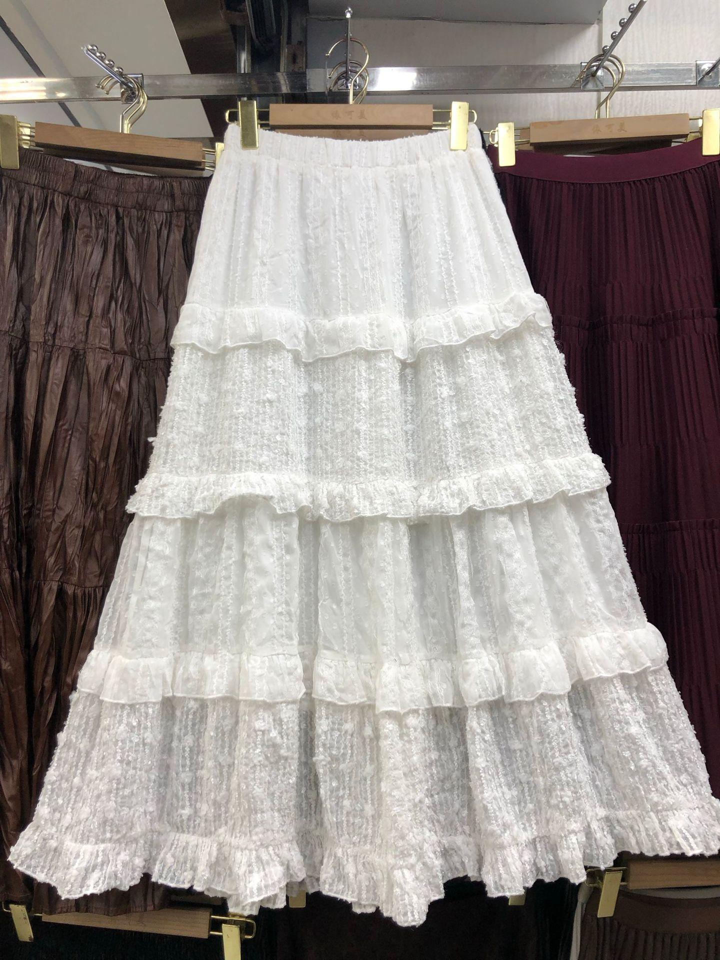 Белая юбка-торт с оборками по краю женская весенняя тяжелая промышленность сверкающая кружевная юбка-фонарик женская одежда one size fits all