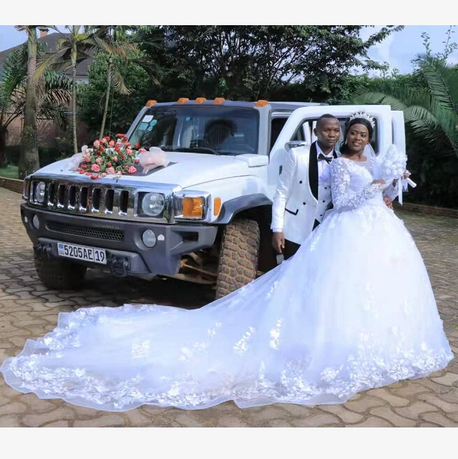 Белое Бальное Платье с длинным рукавом, свадебное платье 2023, Кружевная аппликация, свадебное платье на шнуровке, женское свадебное платье