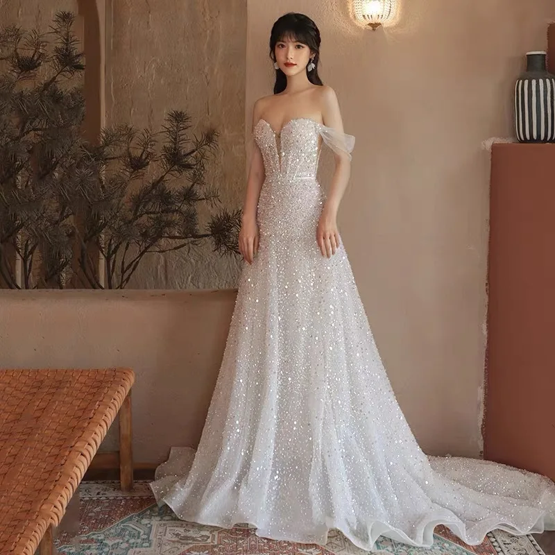 Белое вечернее платье с бисером на плечах, вечерние платья, Длинные Роскошные вечерние платья, женские вечерние платья, WAS10246