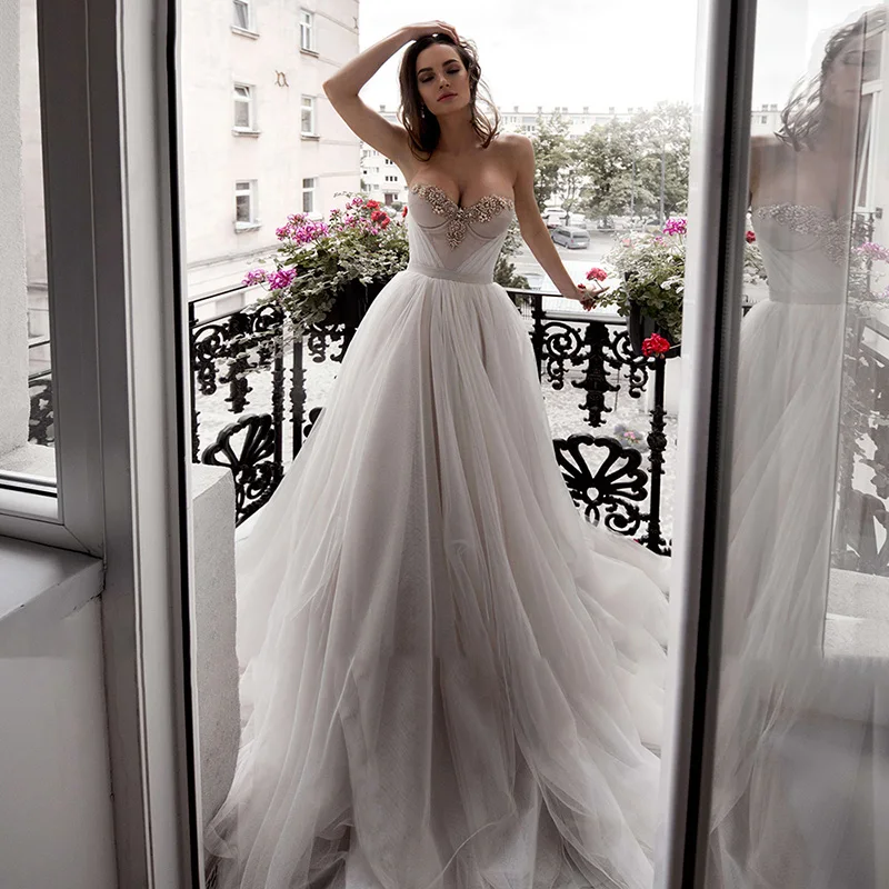 Белое/слоновое свадебное платье, кружево/шелковая органза, свадебная аппликация A-Line Bride на заказ