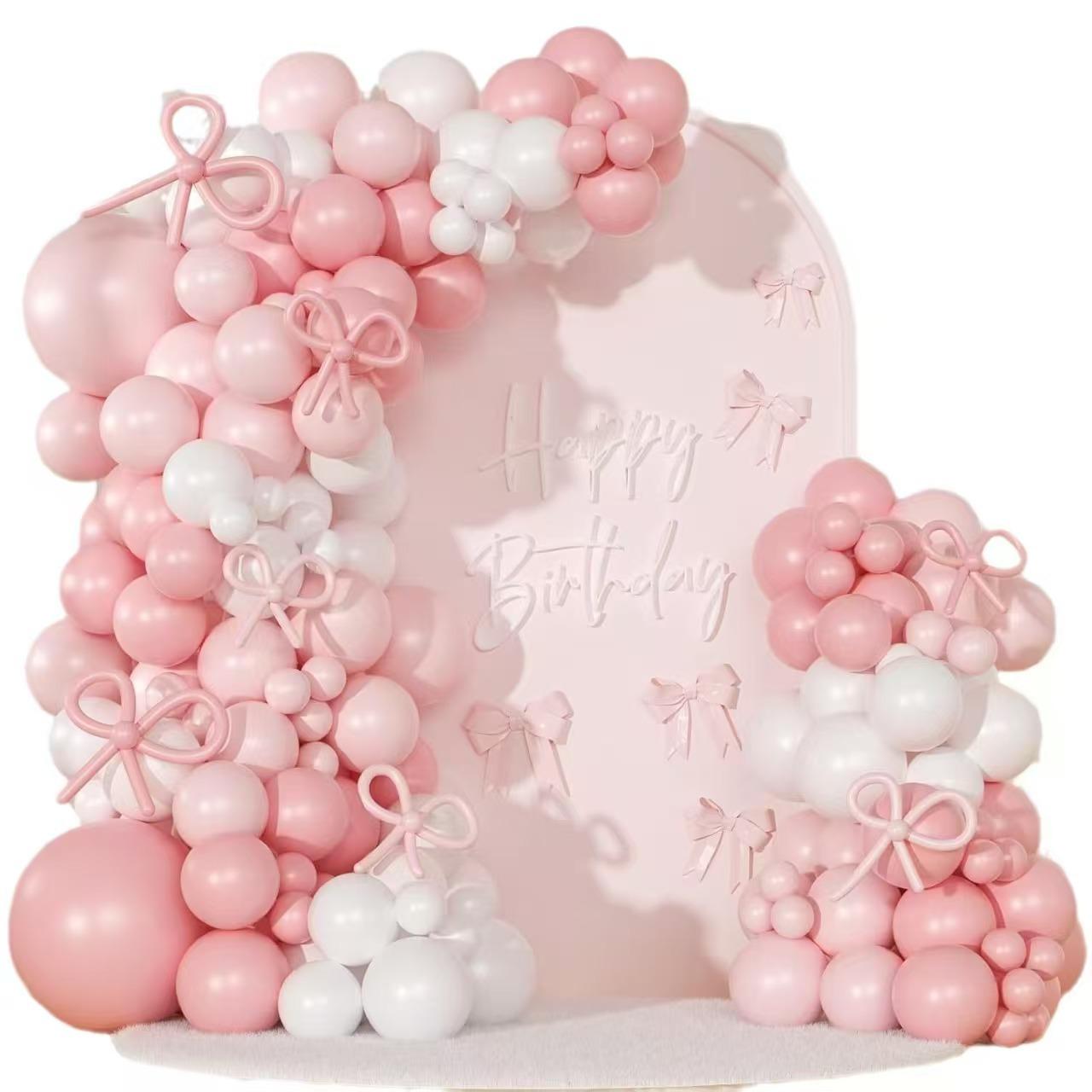 Бело-розовая серия с бантами Гирлянда из воздушных шаров Цепочка из воздушных шаров Набор Цепочка из воздушных шаров Оформление на день рождения девочки Set as shown