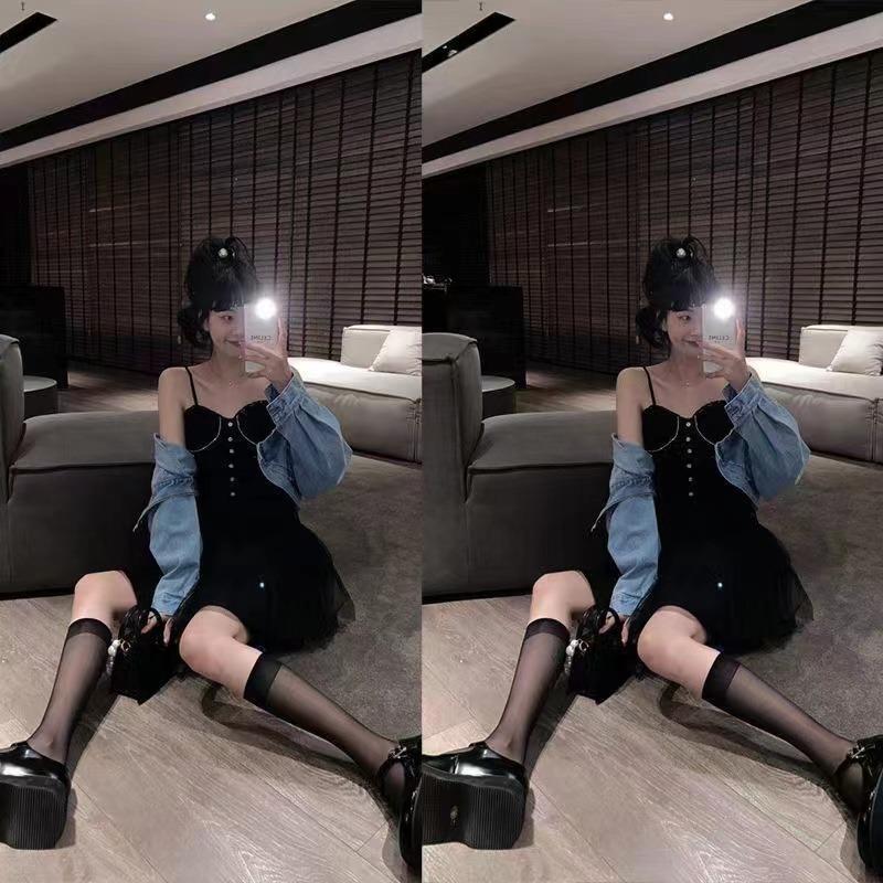 Белые/Черные Гольфы из Нейлона Средней Длины Весенние Тонкие Носки в Стиле Инс Тренд Длинные Гольфы до Колена с Чулочно-носочными Изделиями для Школьницы JK One Size чёрный