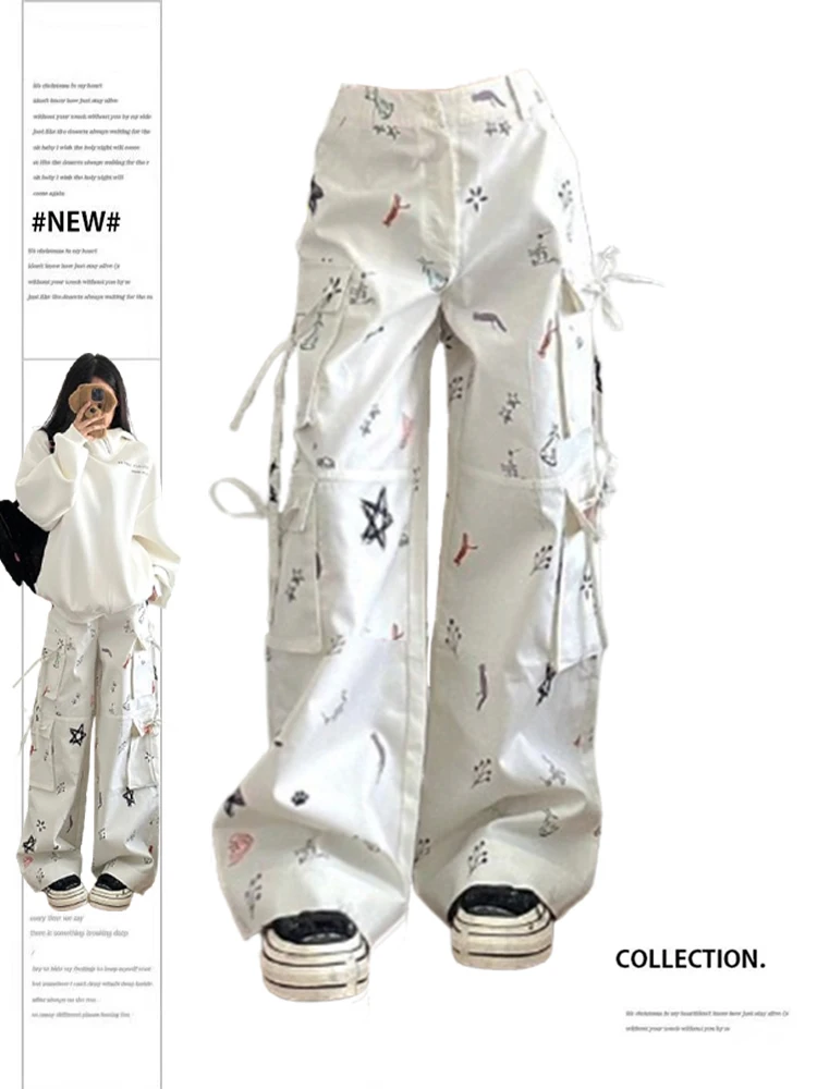 Белые женские брюки, винтажная уличная одежда в стиле 21 века, брюки с завышенной талией, модель 1990s, 2024