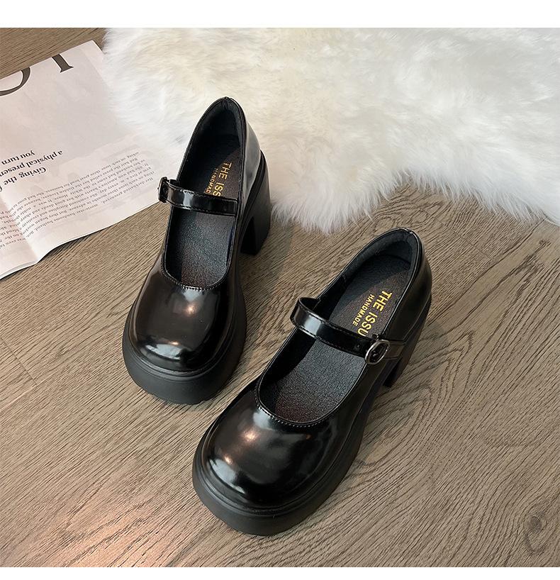 Белые простые кожаные туфли на высоком каблуке для женской весны и осени, новая модель с толстым каблуком, супервысокие, иностранная модель, одинарные туфли, инс тренд 39 чёрный