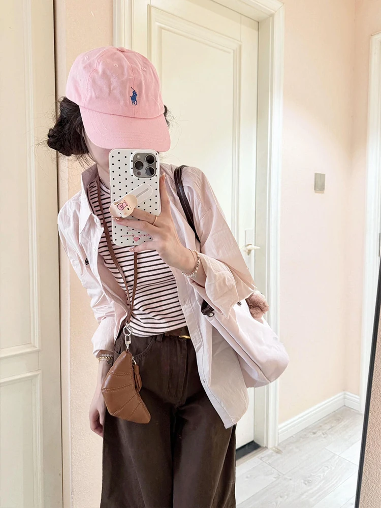 Розовый корейский Sle Long Sve с вышивкой, повседневный свободный женский топ irt, осенний новый дизайн Laid-ba Sle Top Faionable C...