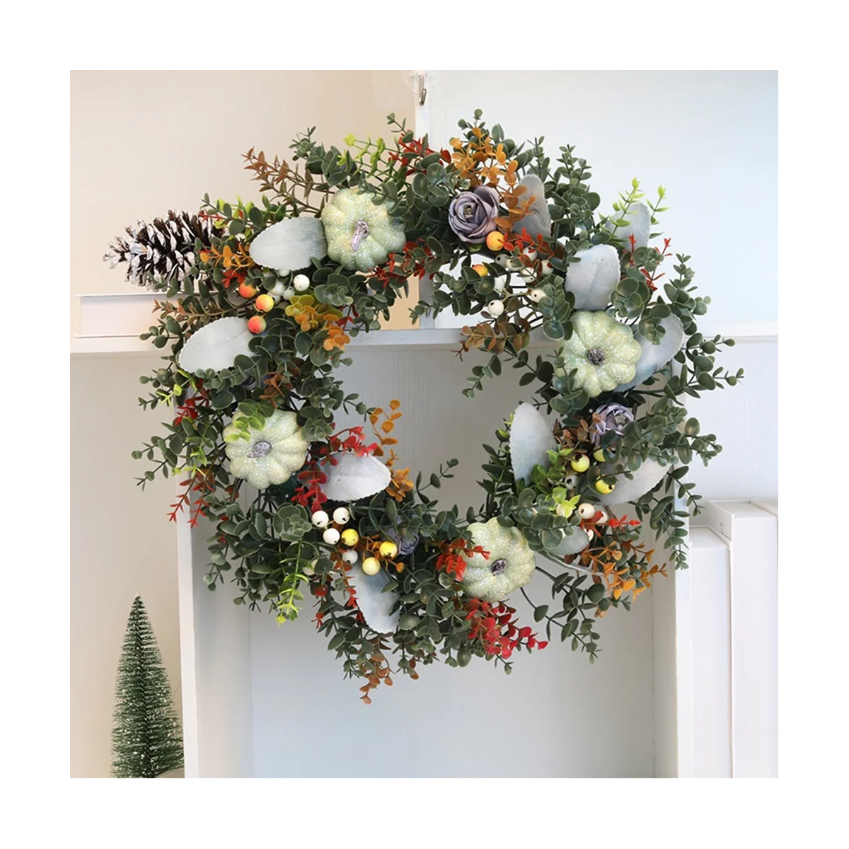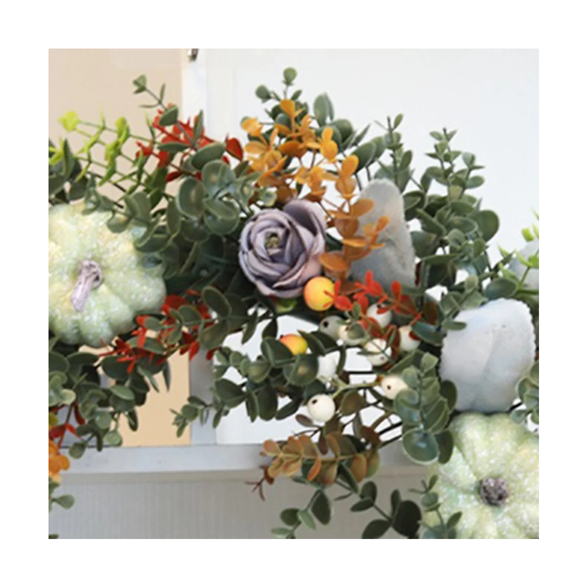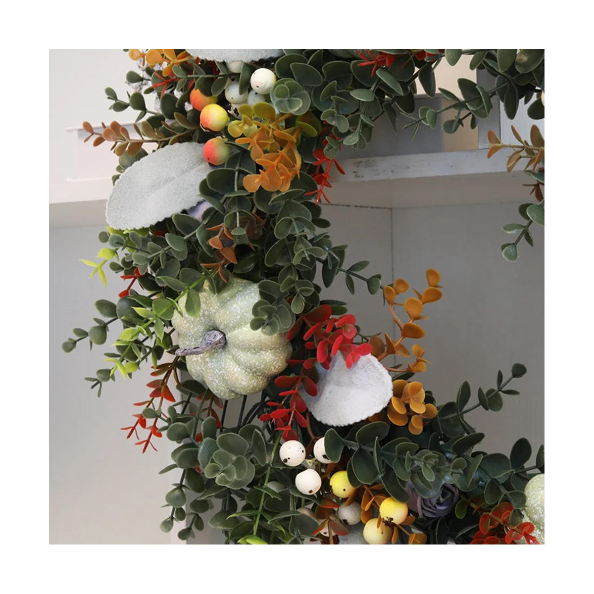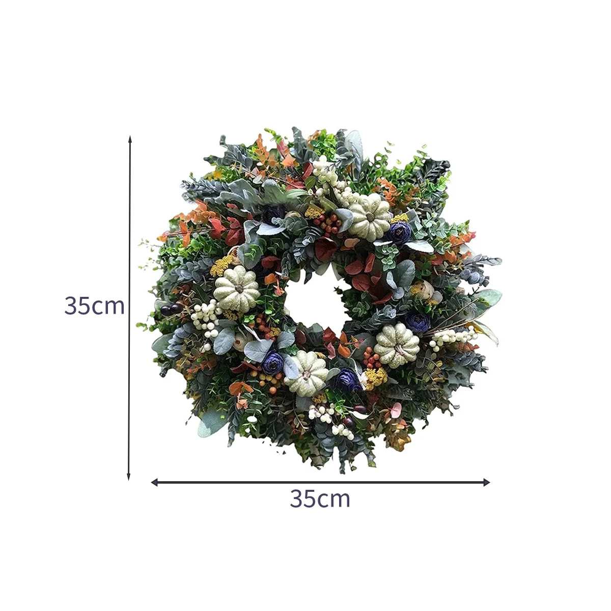Белый венок Ranunculus с тыквами, Осенний декор для входной двери, большой белый венок ручной работы с гортензией