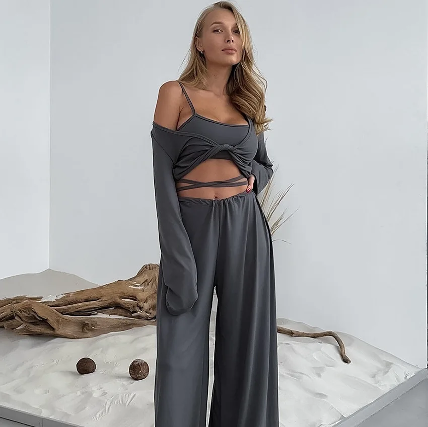 Новинка 2025, осеннее нижнее белье, длинные брюки, пижама с длинными рукавами, комплект из 3 предметов, модная и удобная домашняя одежда, весенняя одежда для дома