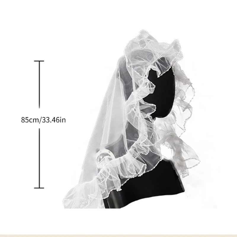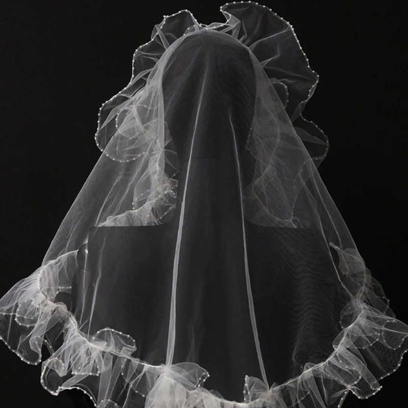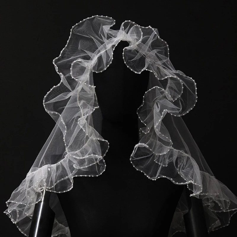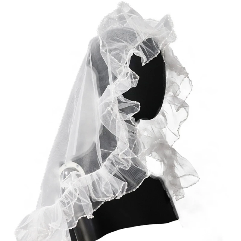 Белый головной убор с рюшами, фата, свадебная фата, покрывающая голову, фото D5QB
