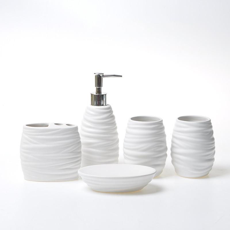 Белый керамический набор для ванной из 5 предметов, бамбуковый поднос, аксессуары для ванной комнаты, парные чашки для полоскания рта, бутылочка для лосьона, держатель для зубных щеток, мыльница