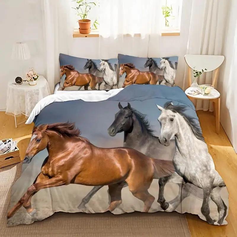 Белый конь Пуховое одеяло Набор Одеяло с принтом животных Удобное постельное белье Набор из трех предметов EU single 135*200