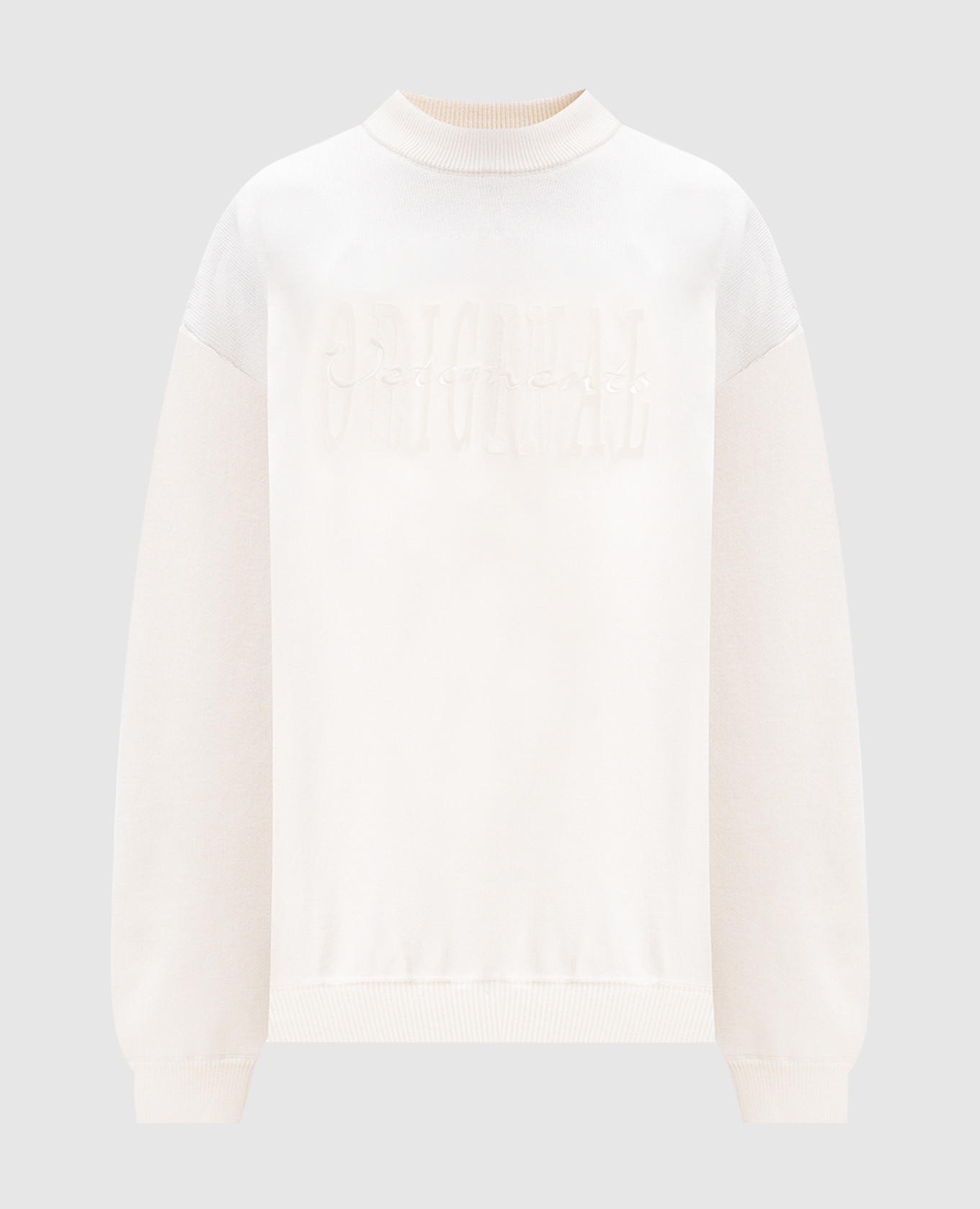 Белый свитер из шерсти мериноса с вышивкой логотипа (560150)