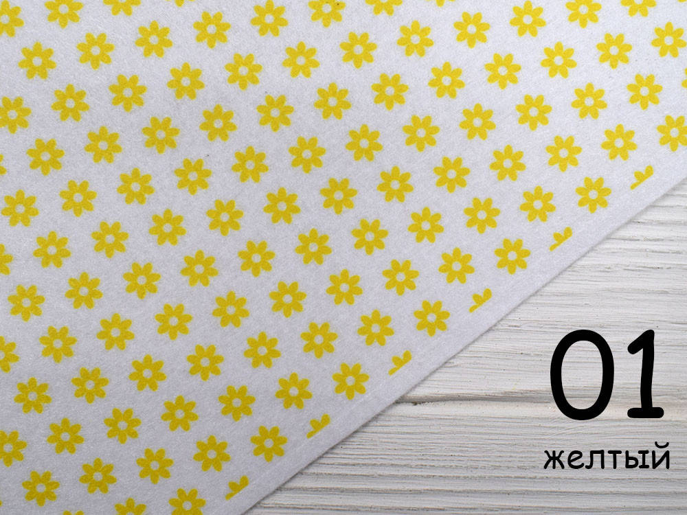 Белый фетр в цветочках - №1 желтый (Корейский жесткий 1,2 мм)