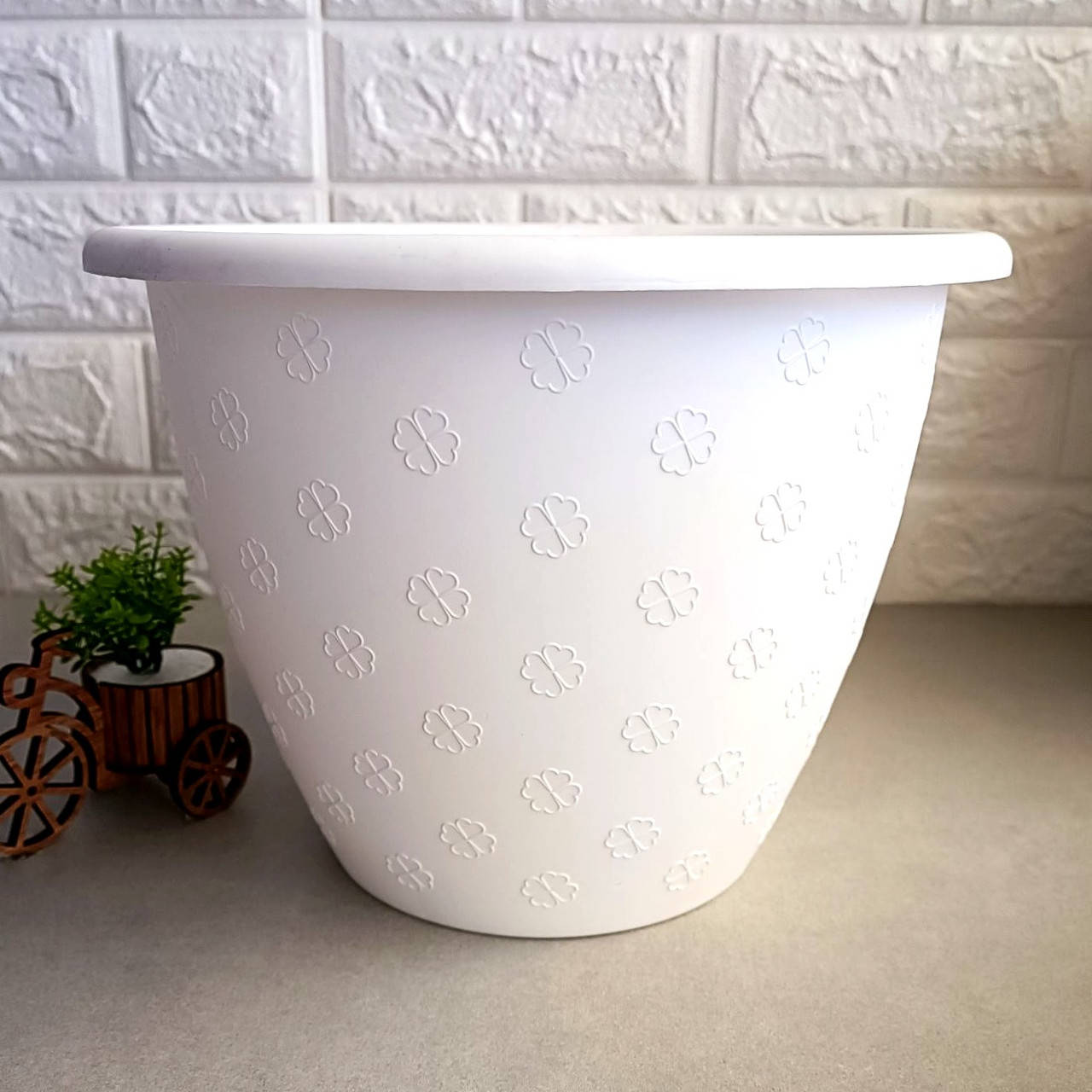 Белый цветочный горшок с декором 6.5л 27*20.5 см, цветочный вазон Верона Алеана