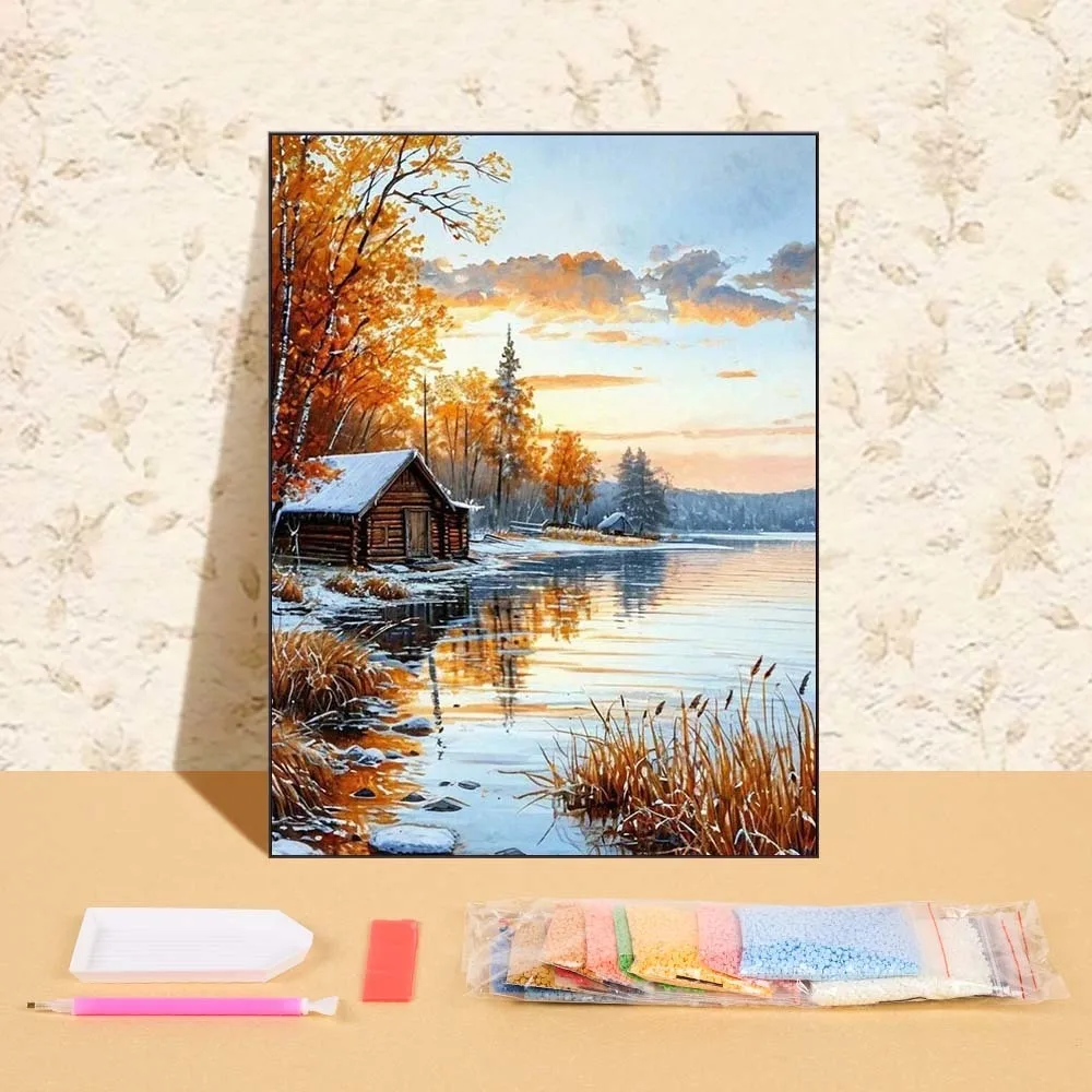 Full Round Drill 5D DIY Diamond Painting Winter River Embroidery Cross Stitch Diamond Mosaic Art Home Decoration Landscape