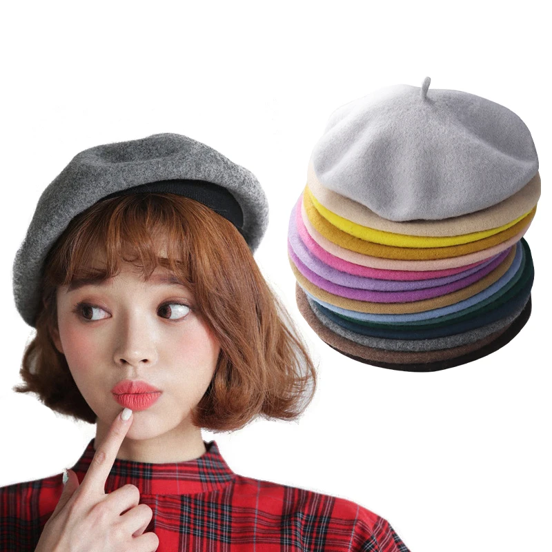 Берет женский шерстяной, однотонная Шапка-бини во французском стиле, теплая зимняя, в винтажном стиле, однотонная, элегантная