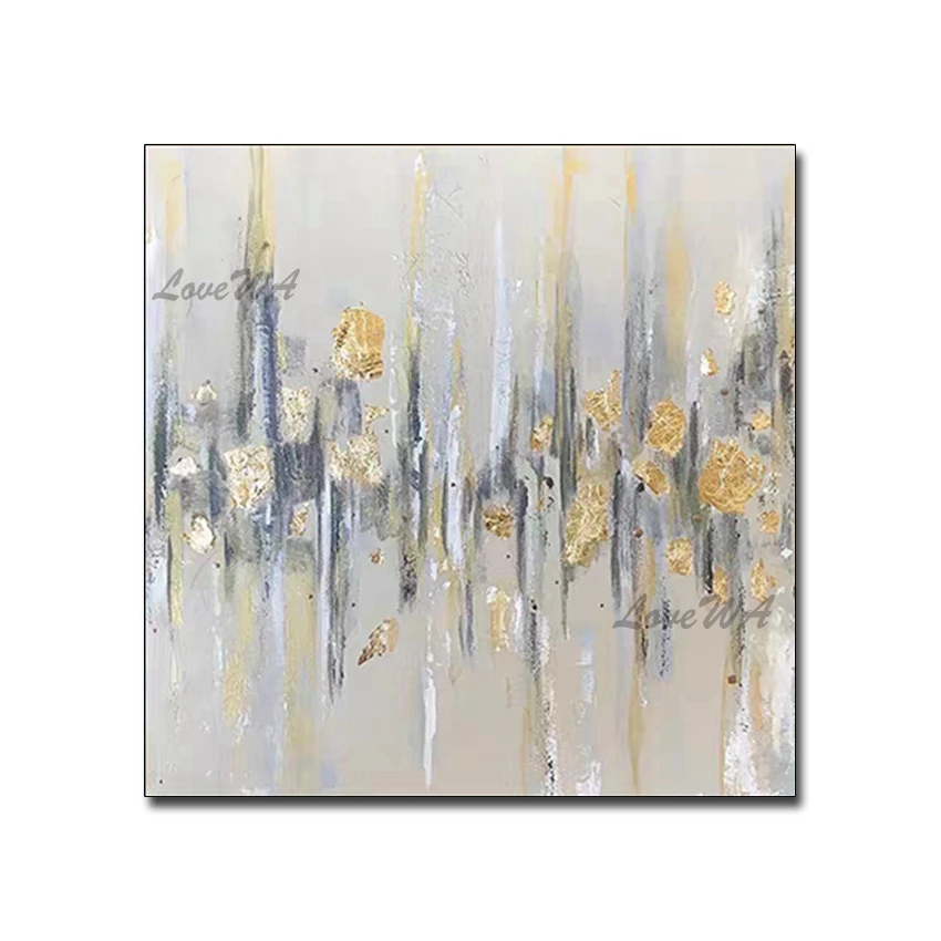 Бесплатная доставка, Золотая фольга без рамки, абстрактная картина маслом, картины, интерьерный декор, большой размер, холст, настенное иску...