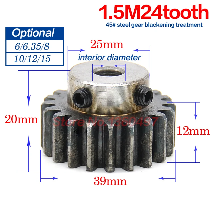 Бесплатная доставка, зубчатая шестерня 1,5 м, модуль 1,5, 24 зубца, ID = 6-15 мм, 45 градусов, стальная шестерня с винтами