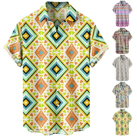 Teens Mens Button Down Short Sleeve Shirt Loose Fit Vacation Clothing Apparel Size 100-170/XXS-8XL