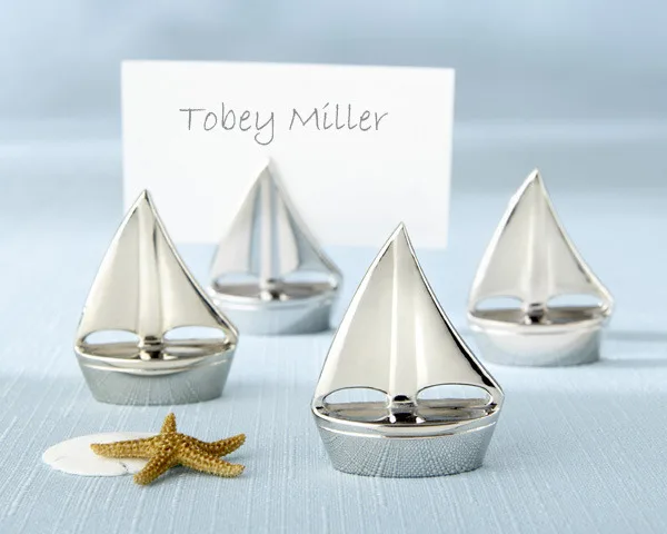 Бесплатная доставка, 50 шт./лот, свадебные сувениры, парусная лодка, серебряные держатели для карт