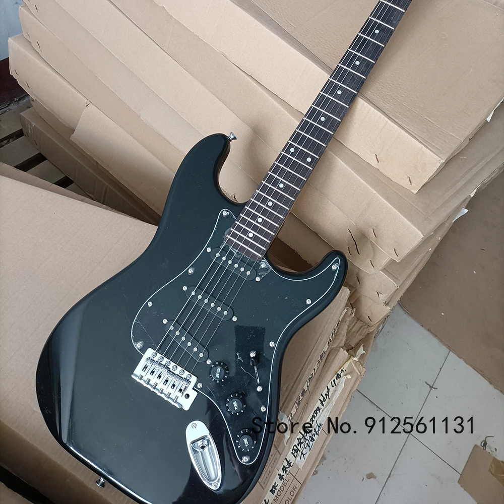 Бесплатная доставка, 6-струнная черная электрическая гитара с подставкой из розового дерева, черная фурнитура