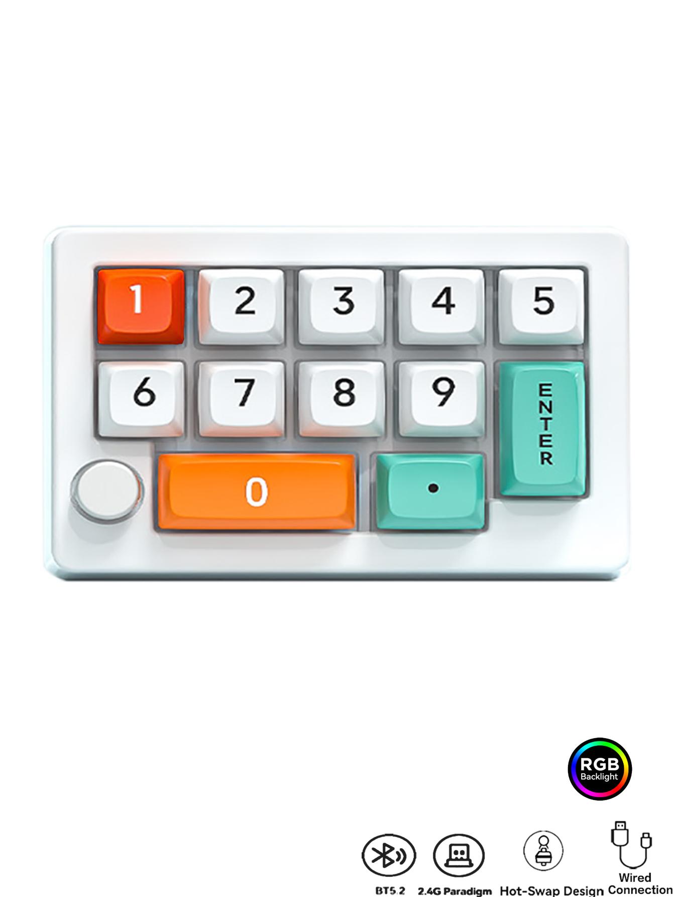 Беспроводная механическая клавиатура с подсветкой RGB 2.4G Tri-Mode, 12 клавиш, полная горячая замена, программируемая цифровая клавиатура для Win7/8/10/Mac белый