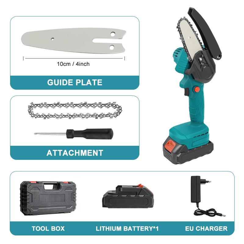 Беспроводная мини-цепная пила, портативная ручная электрическая обрезка с аккумулятором для резки древесины, садовой обрезки, деревообрабатывающего электроинструмента