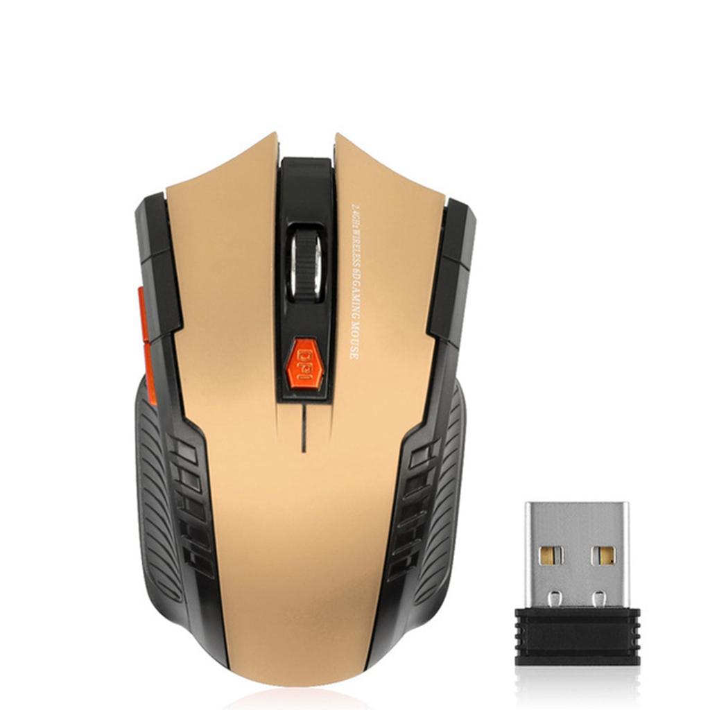 Беспроводная мышь 2,4 ГГц, оптическая мышь с USB-приемником, геймерская мышь 1600 точек на дюйм, 6 кнопок, аксессуары для компьютеров, ПК, ноутбуков золотой