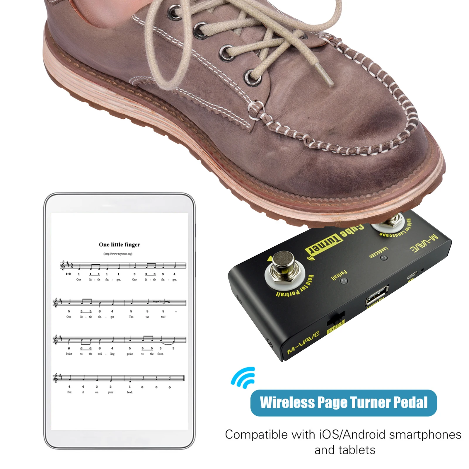 Беспроводная перезаряжаемая педаль-Тернер для подключения смартфонов и планшетов