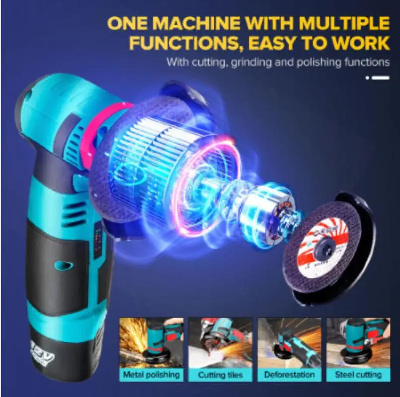 Беспроводная ударная угловая шлифовальная машина, литий-ионный режущий Электрический точильный инструмент, бесщеточный электроинструмен...