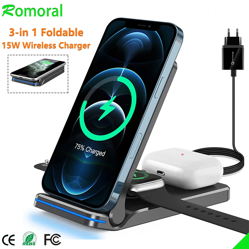 Беспроводное зарядное устройство 15 Вт для Samsung Note 20 S20/ iPhone 12 11 iWatch зарядное устройство для iWatch SE 6 Airpods Pro 2 3 Держатель зарядного устройства