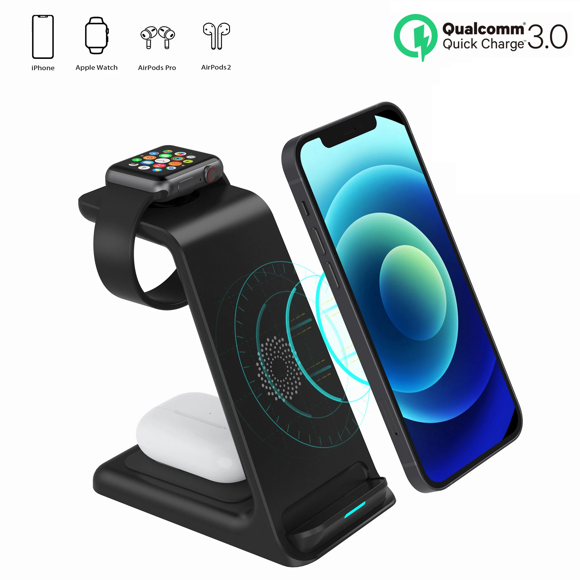 Беспроводное зарядное устройство 3 в 1, подставка для iPhone 11/12 Pro Max Qi 15 Вт, индукционные зарядные устройства для быстрой зарядки Apple Watch AirPods Samsung