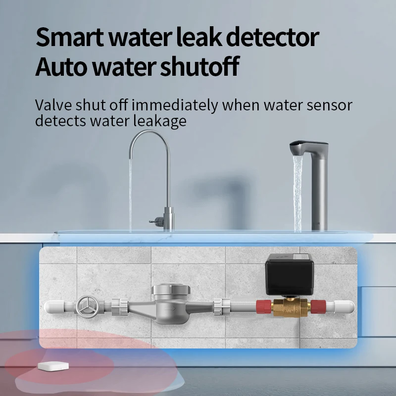 Беспроводной датчик утечки воды, питание от батарей, клапан защиты от утечки воды, 2 шт. DN15 DN20 DN25 с мини-датчиком воды, 2 шт.