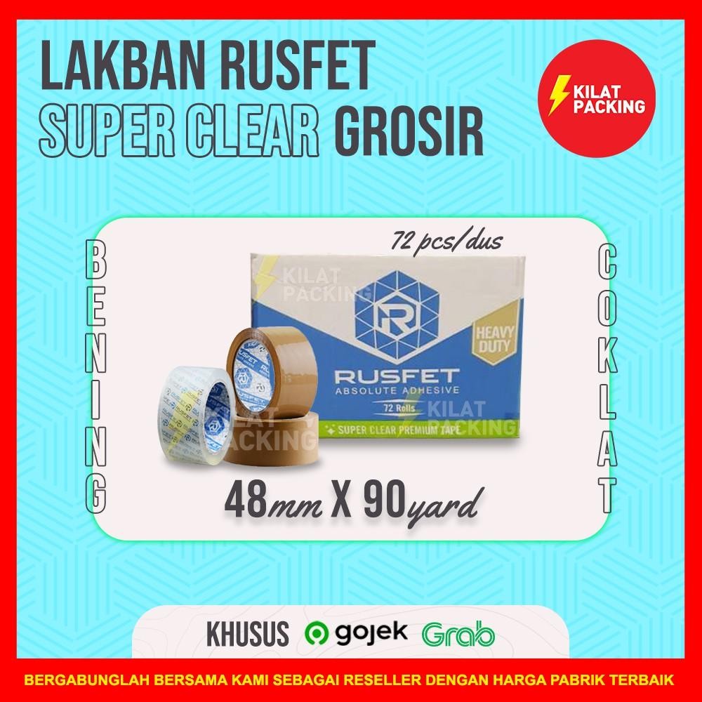 Lakban Rusfet Super Clear Premium Quality Ukuran 48 Mm X 90 Yard Termurah Dus - Gojek/Grab