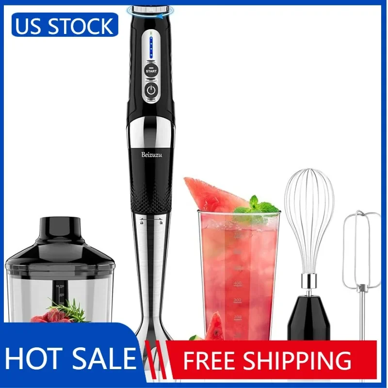 Беспроводной ручной блендер: перезаряжаемый Аккумуляторный Погружной блендер 4 в 1, 21 скорость и 3 угла наклона