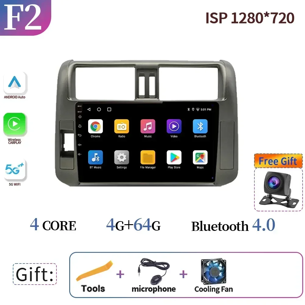 Беспроводной Carplay 2Din экран авто радио мультимедийная навигация 4G GPS Android 14 для Toyota Land Cruiser Prado 150 2009-2013