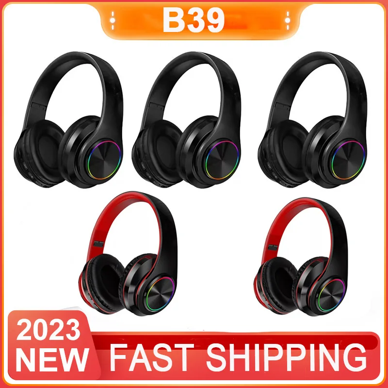 Беспроводные Bluetooth-наушники B39 с ярким светом, подключаемые карты, музыкальные игры, спортивные наушники с сабвуфером, стерео, оптовая продажа