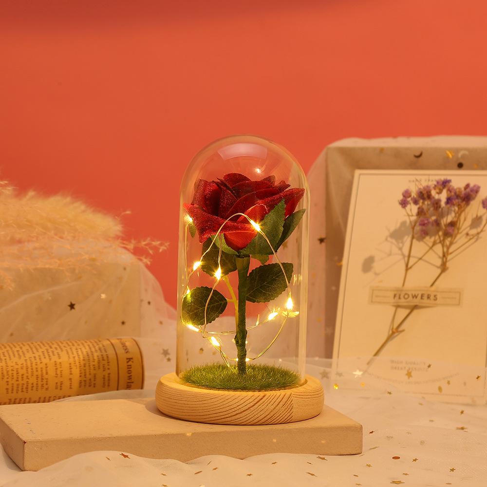 Бессмертная роза ночник с золотой пылью в стеклянном куполе – Цветочная композиция на праздник Циси