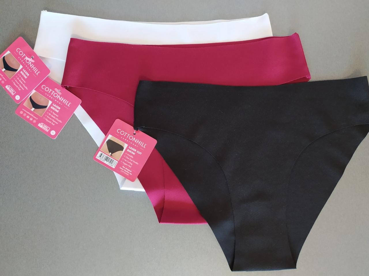 Цвета в комплекте - белый, черный, вишня. Трусики в индивидуальной упаковке.