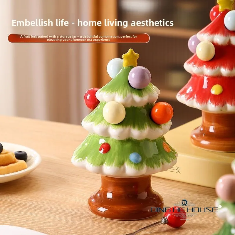 Christmas Tree Fruit Fork Set Dopamine Children's Creative Stainless Fruit Fork Cute Storage Canister Coffee Dessert Fork Gift