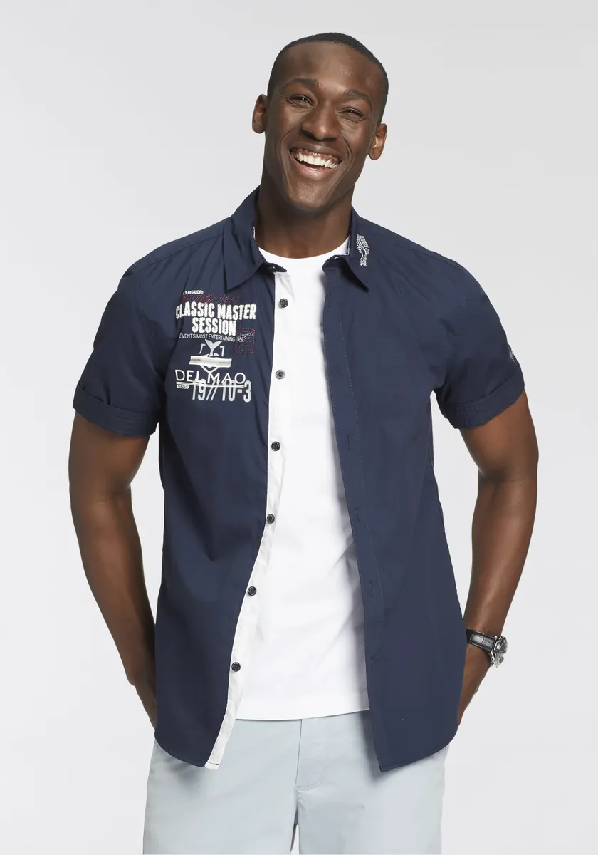 Рубашка DELMAO с короткими рукавами, с модным нагрудным принтом/вышивкой - НОВЫЙ БРЕНД!, цвет морской волны